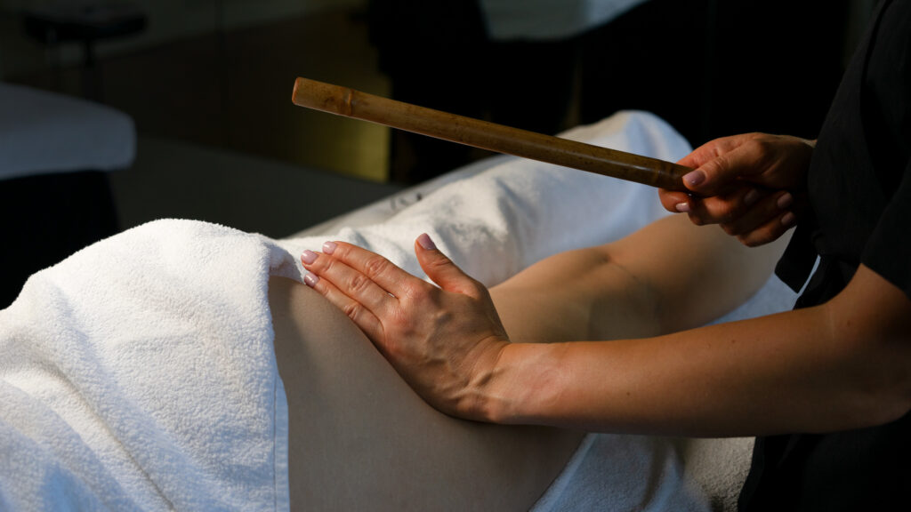 2/ Yasumi Kobido Body – wspaniały dla osób, które są przemęczone, przeżywają silny stres wywołujący napięcie mięśniowe oraz dla tych, którzy przy okazji pragną ujędrnić ciało. Opiera się na połączeniu różnych technik intensywnego masażu przy zastosowaniu specjalnego olejku, który sprzyja regeneracji skóry, wzmocnieniu płaszcza hydrolipidowego, redukcji stresu oksydacyjnego, odżywieniu i nawilżeniu. Masaż manualny polega na silnym, zdecydowanym masowaniu ciała dłońmi, co poprawia krążenie krwi oraz limfy, przyspiesza metabolizm, redukuje obrzęki, a w końcowej fazie odpręża umysł i rozluźnia mięśnie. Masaż bambusowymi kijami pogłębia te procesy, a dodatkowo usprawnia również pracę układu trawiennego, dzięki czemu przyspiesza wydalanie toksyn z organizmu. I na koniec kinesiotaping, czyli plastrowanie dynamiczne, które wzmacnia uruchomione podczas masażów zmiany w organizmie, a do tego sprzyja naturalnej regeneracji.